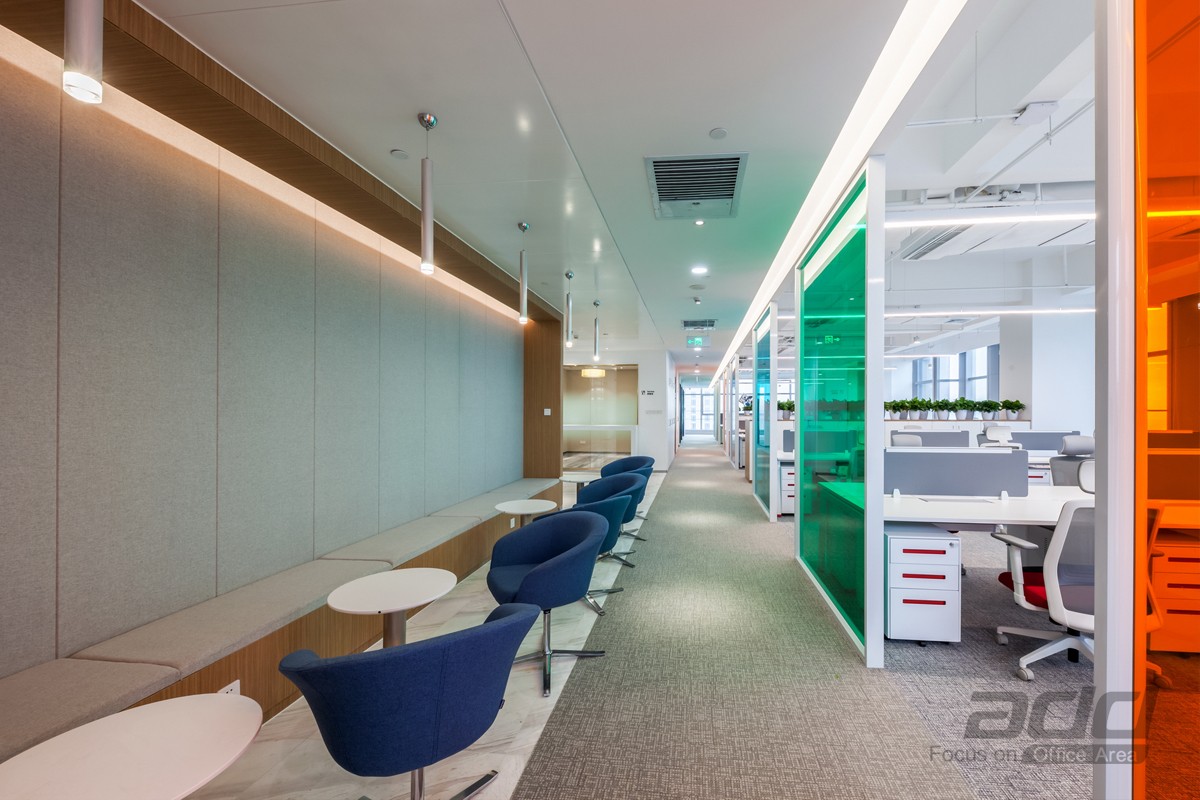 靈動多元的協調格局,展現視覺滲透性與視野開闊性,有效促進了團隊之間的溝通合作,促成了部門之間的更強的互動可能與凝聚力。形式多樣的辦公模式,為員工的工作和娛樂活動提供了更多的便利性和可操作性,與企業在團隊結構中增加溝通和互動的宗旨相吻合。
